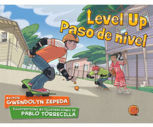 Popular kids’ book author Gwendolyn Zepeda teams up again with artist and illustrator Pablo Torrecilla to create a lively story that will have young readers laughing in commiseration with a kid consumed by imaginary goals. Following up on their acclaimed I Kick the Ball / Pateo el balón, this talented pair has once again crafted an appealing bilingual picture book that will encourage kids ages 5 to 9 to get off the couch and get moving.