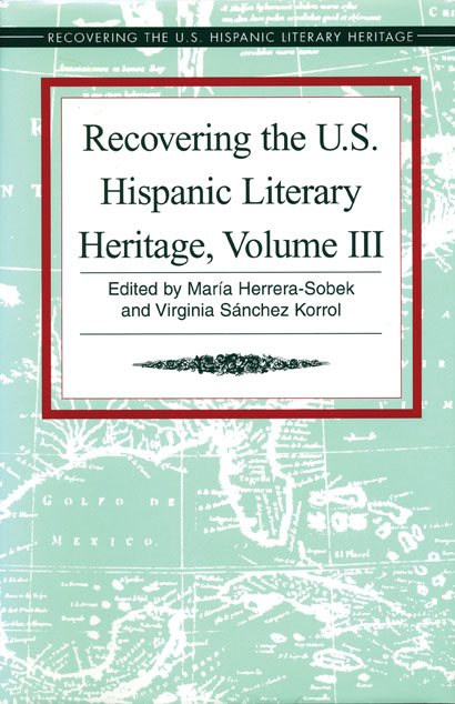 This third volume of academic essays on recovering the Hispanic literary heritage of the United States features 27 articles by leading scholars. It addresses the broad topics of “Rewriting the Present: Nineteenth-Century Historical Novels”; “Women’s Voices: The Construction of Ethnic Gender Identities”; “Chroniclers, Ethnographers, and Historians”; “Identity and Affirmation: Contextualizing U.S. Hispanic Literature”; and “Using Historical, Archival, and Oral Sources.” Editors María Herrera-Sobek and Virginia Sánchez Korrol also contribute a unifying introduction.