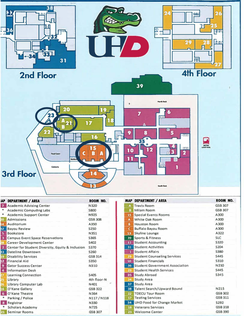 University of Houston Downtown (UHD) at One Main Street, Houston, TX 77002, 3rd Floor.